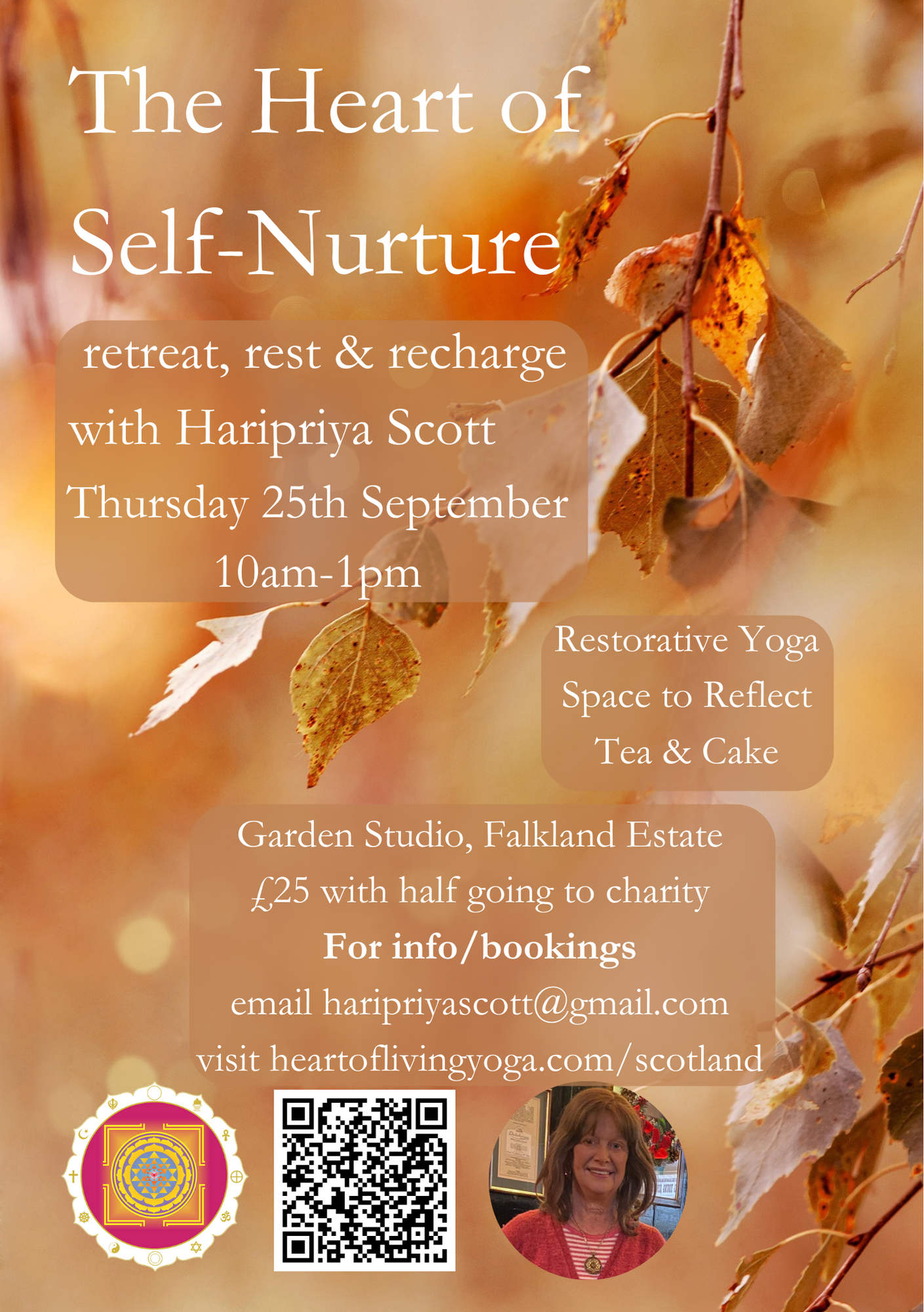 You are warmly invited to join Haripriya in the beautiful Garden Studio for a morning of rest, relaxation and chat.  Together we will explore simple techniques to bring our bodies, minds and emotions into harmony.  Restore our energy through simple yoga poses (all done lying gently on the mat, no prior experience required).  Experiment using journaling as a tool to calm a busy mind.  With each of us discovering our own unique ‘Recipe for Self-Nurture’.  In addition, we will gather together with others, to chat over tea and cake